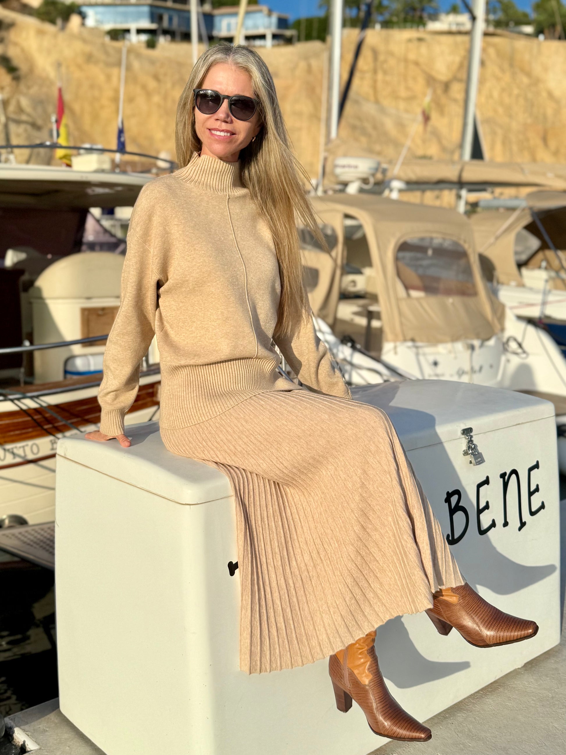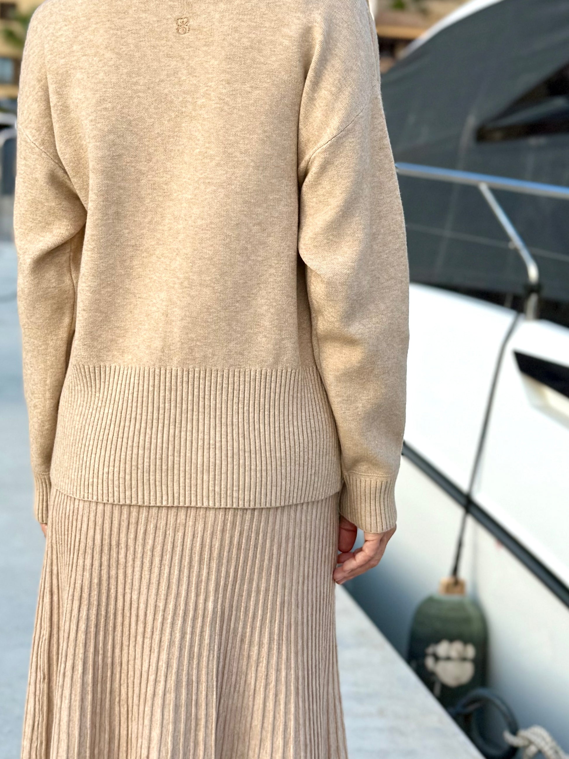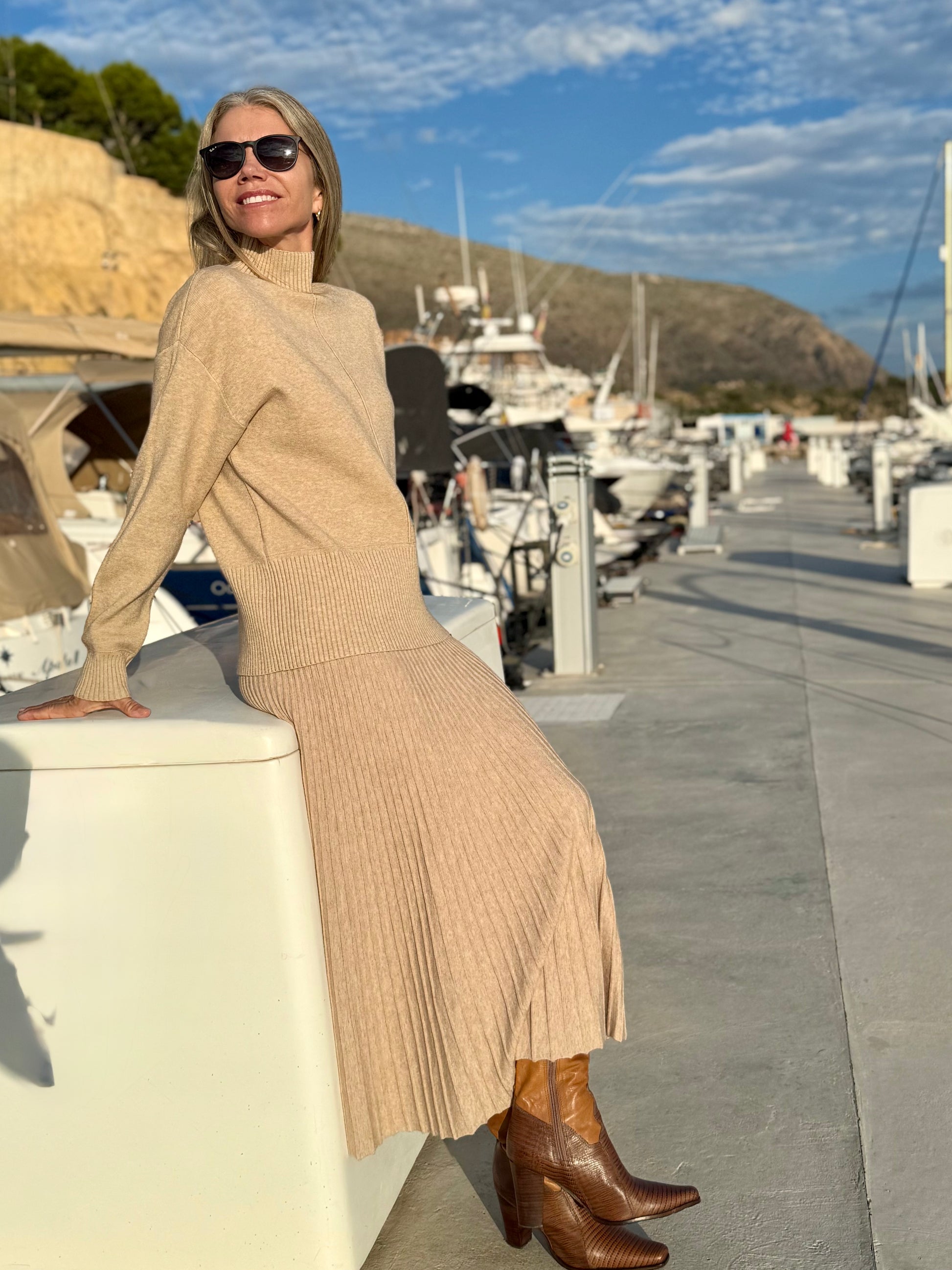 Its clean lines and gentle knit give it a refined shape, and the skirt falls beautifully with every movement.